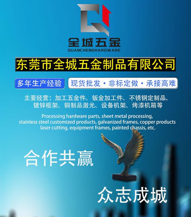 全城不銹鋼制品有限公司是一家有著十余年加工經(jīng)驗(yàn)的工廠,經(jīng)過多年的努力和發(fā)展,公司目前具備現(xiàn)金的生產(chǎn)設(shè)備和技術(shù)力量,擁有行業(yè)技工5人,擁有自動車床,折板機(jī)兩臺,打腳車床,大功率激光切割機(jī)及電焊鉆頭螺絲打頭機(jī)等等,在行業(yè)內(nèi)有很高的信用聲譽(yù)。 全城不銹鋼制品有限公司是一家集金屬激光切割、精密鈑金生產(chǎn)、自動化設(shè)備整套零件及外殼生產(chǎn)、家具五金配件制作、不銹鋼制品制造、以及工業(yè)產(chǎn)品制造的企業(yè)。公司位處華南地區(qū)東莞,現(xiàn)擁有激光切割,數(shù)控折彎、焊接、車床、銑床、磨床、線切割等一站式服務(wù)設(shè)備,并擁有專業(yè)的售后服務(wù)團(tuán)隊(duì)為你解決問題。我司技術(shù)團(tuán)隊(duì)能積極配合貴司參與產(chǎn)品設(shè)計(jì)研發(fā),效率完成工件的生產(chǎn)。我們的產(chǎn)品涉及電子、五金、機(jī)械等多個(gè)行業(yè)。公司主打的產(chǎn)品為可承接各種精密鈑金件加工,專注對外激光切割加工,轉(zhuǎn)塔數(shù)控沖孔加工,百葉孔加工等。 為擴(kuò)展工程機(jī)械、造船工業(yè)等的應(yīng)用,切割低碳鋼厚度已超過30mm,并特別注意研究用氮?dú)馇懈畹吞间摰墓に嚰夹g(shù),以提高切割厚板的切口質(zhì)量。在中國擴(kuò)大CO2激光切割的工業(yè)應(yīng)用領(lǐng)域,解決新的應(yīng)用中一些技術(shù)難題仍然是工程技術(shù)人員的重要課題。 激光束的參數(shù)、機(jī)器與數(shù)控系統(tǒng)的性能和精度都直接影響激光切割的效率和質(zhì)量。特別是對于切割精度較高或厚度較大的零件,必須掌握和解決以下幾項(xiàng)關(guān)鍵技術(shù)。 來圖打樣 快速打樣 貨期準(zhǔn)時(shí)。 鈑金切板轉(zhuǎn)角折彎打磨激光焊接一體成型鈑金加工0.3-25mm鋼板鐵 不銹鋼鋁激光切割 折彎件焊接烤漆 請認(rèn)準(zhǔn)我們?nèi)牵?nbsp;